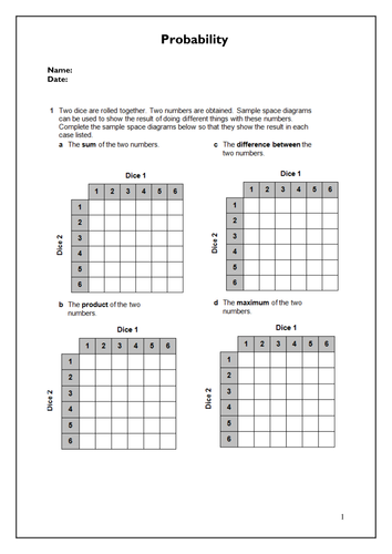 Probability Worksheets - Math Worksheets 4 Kids Grab some of these probability worksheets for free! Probability on Coins Simple probability worksheets based on tossing single coin or two coins. Identify the proper sample space before finding probability. Probability in a single coin toss Probability in pair of coin - 1 Probability in pair of coin - 2 Probability on Days and Months